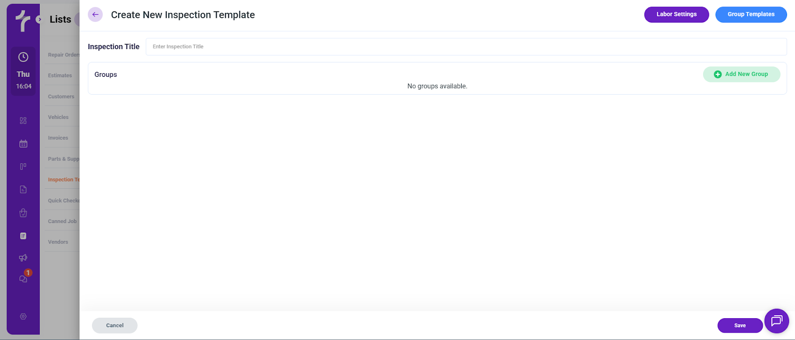 Side Panel → Lists → Inspection Templates → Create New Template → Advanced Template