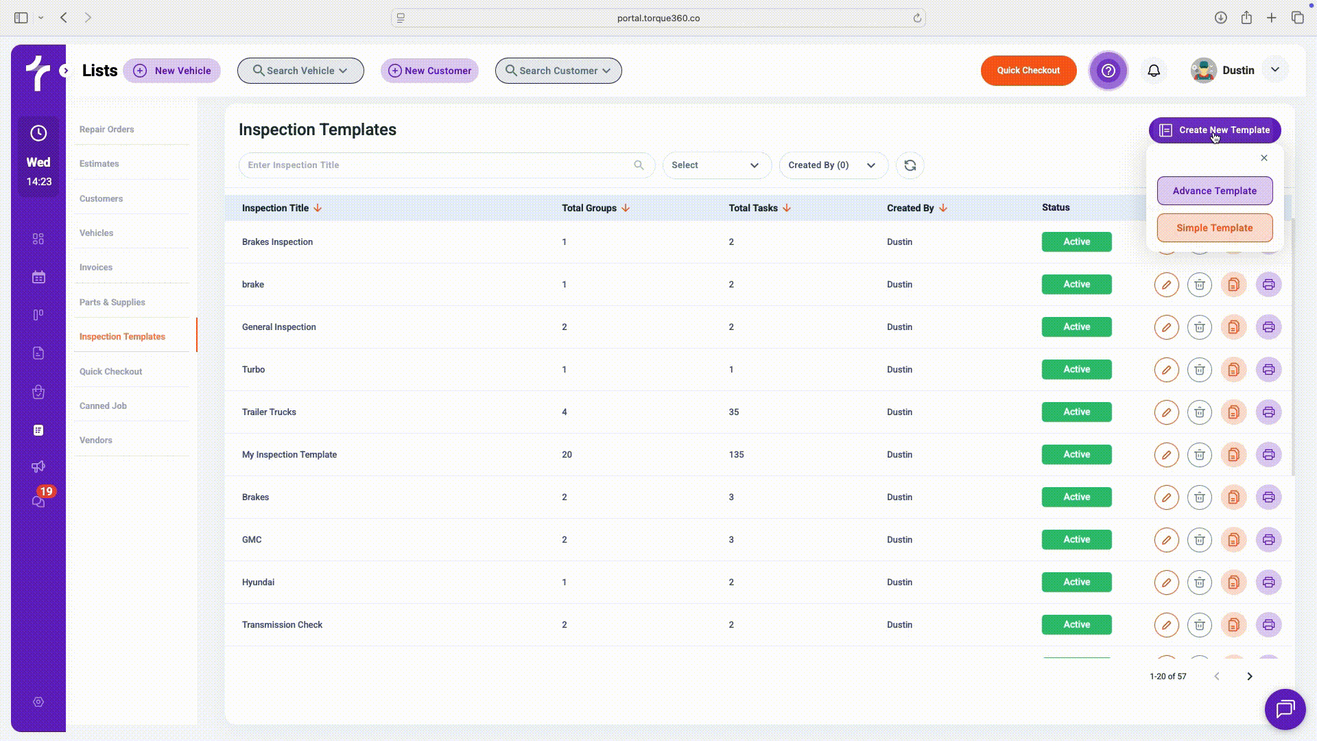 The Advanced Template allows shops to build structured digital vehicle inspections using configurable groups and tasks. Groups represent major inspection sections such as brakes, suspension, or drivetrain, while tasks define the specific inspection checks technicians perform within each group.