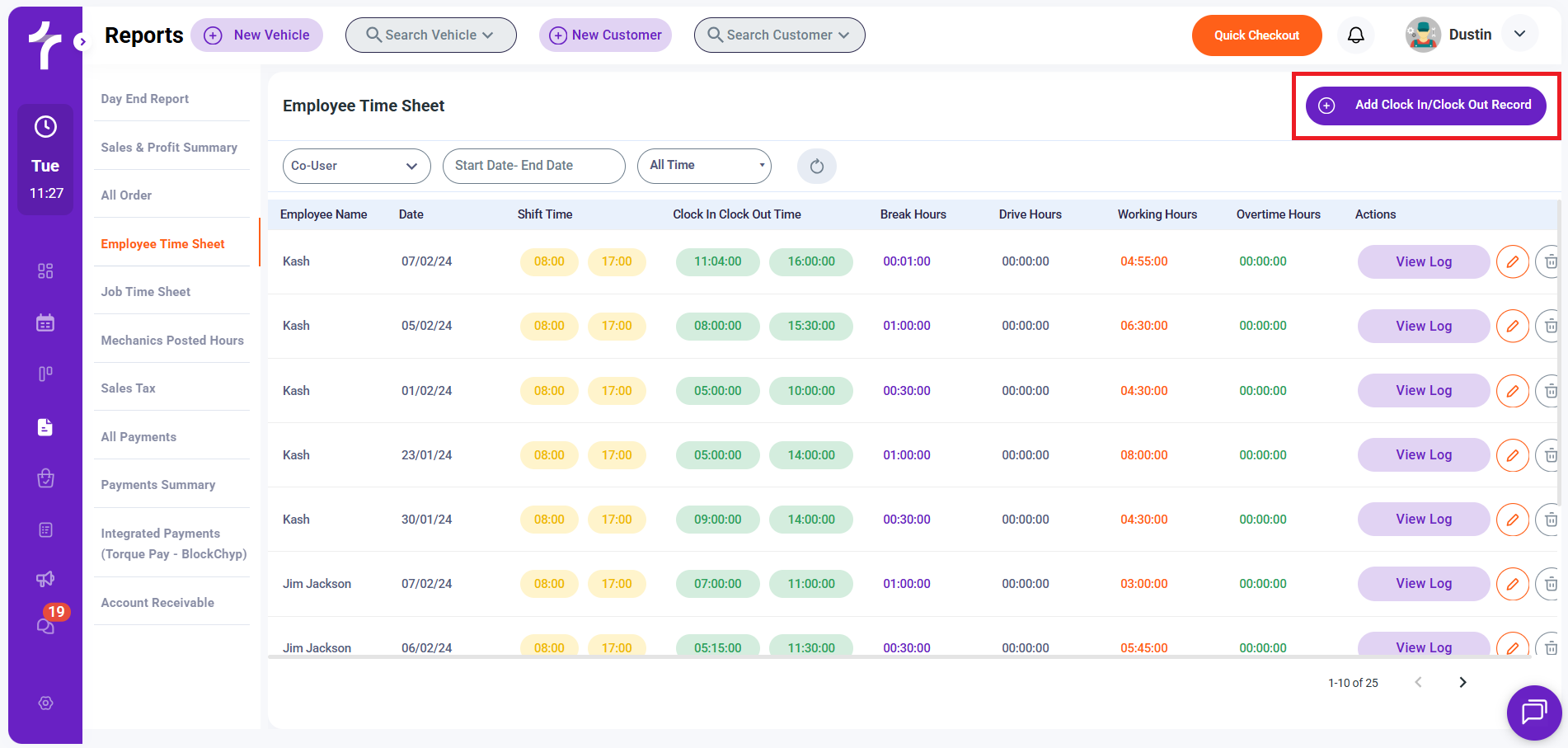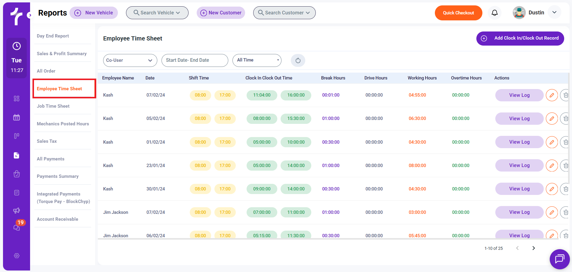 The Employee Time Sheet report helps shop owners and managers monitor employee attendance, track working hours, review overtime, and maintain accurate records for payroll and workforce management.
