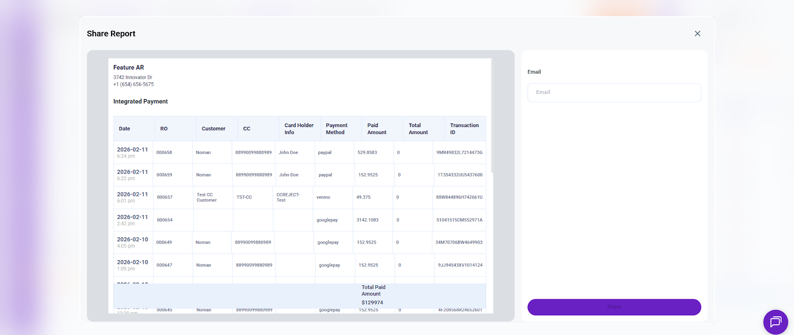 The recipient will receive the report in their email, making it easy to share payment summaries with accountants, managers, or other team members.