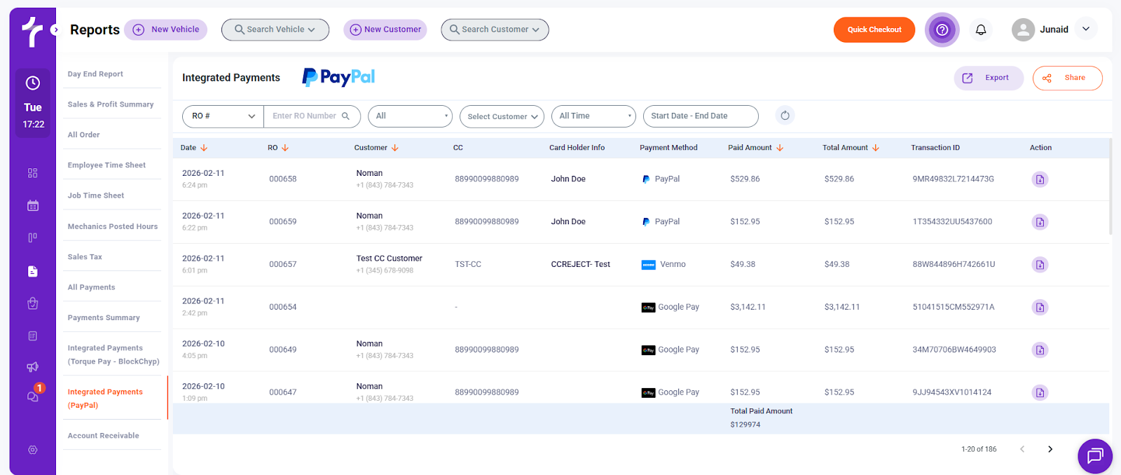 This article walks you through using the Integrated Payments (PayPal) report in Torque360. You’ll learn how to filter PayPal transactions, review payment details, export reports, and share transaction summaries to help manage and reconcile your shop’s digital payments efficiently.