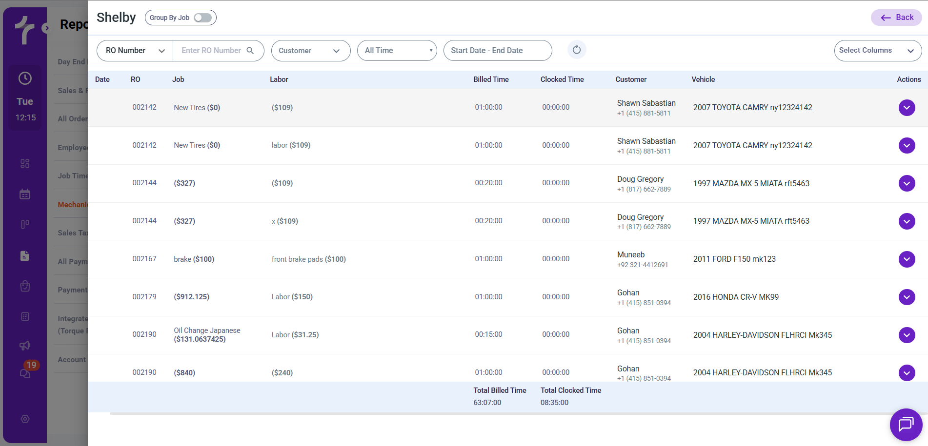 These controls allow you to isolate and analyze specific repair orders, customers, or time periods.